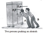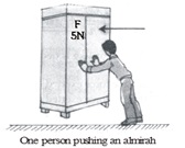 Ex. Suppose an almirah is being pushes by two persons A and B. Let force applied by A be F1 = 2N and that by B be F2 = 3N. These two forces together will result in some displacement of the almirah in a given time. In another situation, a person C pushing the same almirah kept initially in the position as that of the previous situation. The person C is applying a force F = 5N in the same direction as that of A and B.