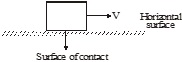 Suppose a block is moving on a horizontal surface with a velocity υ. The darkened line at the bottom of the block is the surface of contact of the block with floor. We notice that this surface of contact is moving towards right with respect to the horizontal surface. To reducing this relative motion, frictional force acts. Frictional force is exerted by the floor on the block in a direction opposite to velocity.