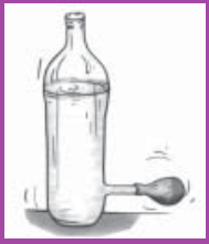 Take some discarded plastic bottle and fix a glass tube near its bottom. It can be done by slightly heating one end of the glass tube and then inserting it near the bottom of the bottle. In case there is some leakage, you must seal it with molten wax. Now cover the free end of the glass tube with a thin rubber sheet. On filling the plastic bottle up to half with water, the rubber sheet fixed to the glass tube bulges. When more water is added in the plastic bottle, there is change in the bulge of the rubber sheet. Since the rubber sheet is fixed on the side of the container, it shows that water exerts pressure on the side of the container. In other words, liquids exert pressure on the walls of the container.